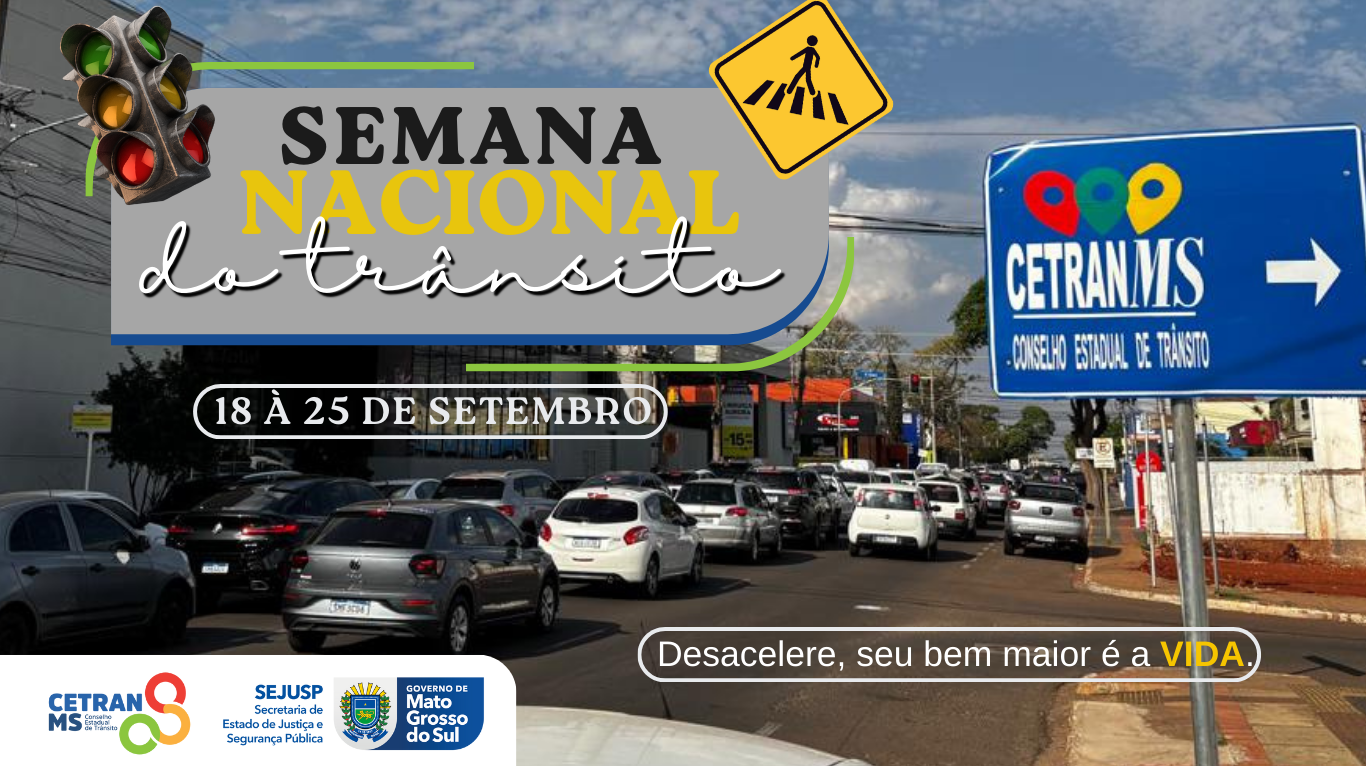 “Desacelere, seu bem maior é a vida” é o tema da Semana Nacional de Trânsito, celebrada entre os dias 18 e 25 de setembro em todo o país. Em Mato Grosso do Sul, o Conselho Estadual de Trânsito – CETRAN/MS mobiliza órgãos, instituições de ensino e sociedade civil para fortalecer a cultura da segurança viária.